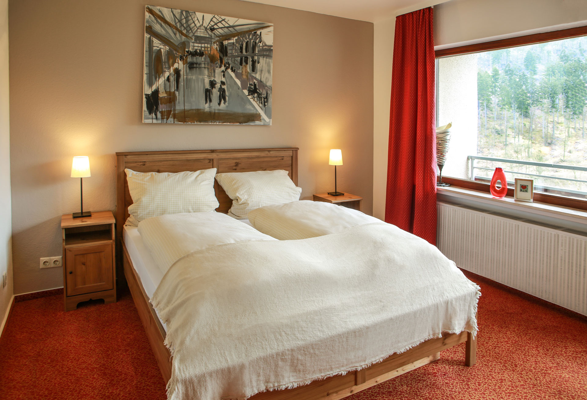 All single rooms are furnished in a friendly and comfortable way. They are equipped with a sitting area and a comfortable bed. You can enjoy a beautiful view of the forest.